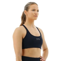 Train hard and train smart in the TYR Racerback Sports Bra. With breathable and moisture wicking Kineticâ„¢ Fabric Technology, a stay-in-place band and supportive cross-back design, FGRSOL3A Women’s Racerback Sports Bra is made to keep you moving.